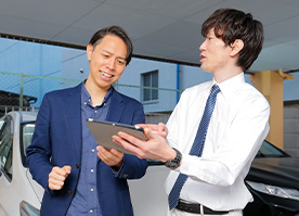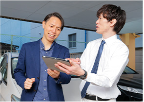 お客様の大切な車を扱わせていただくので、常に清潔な服装を心がけております。